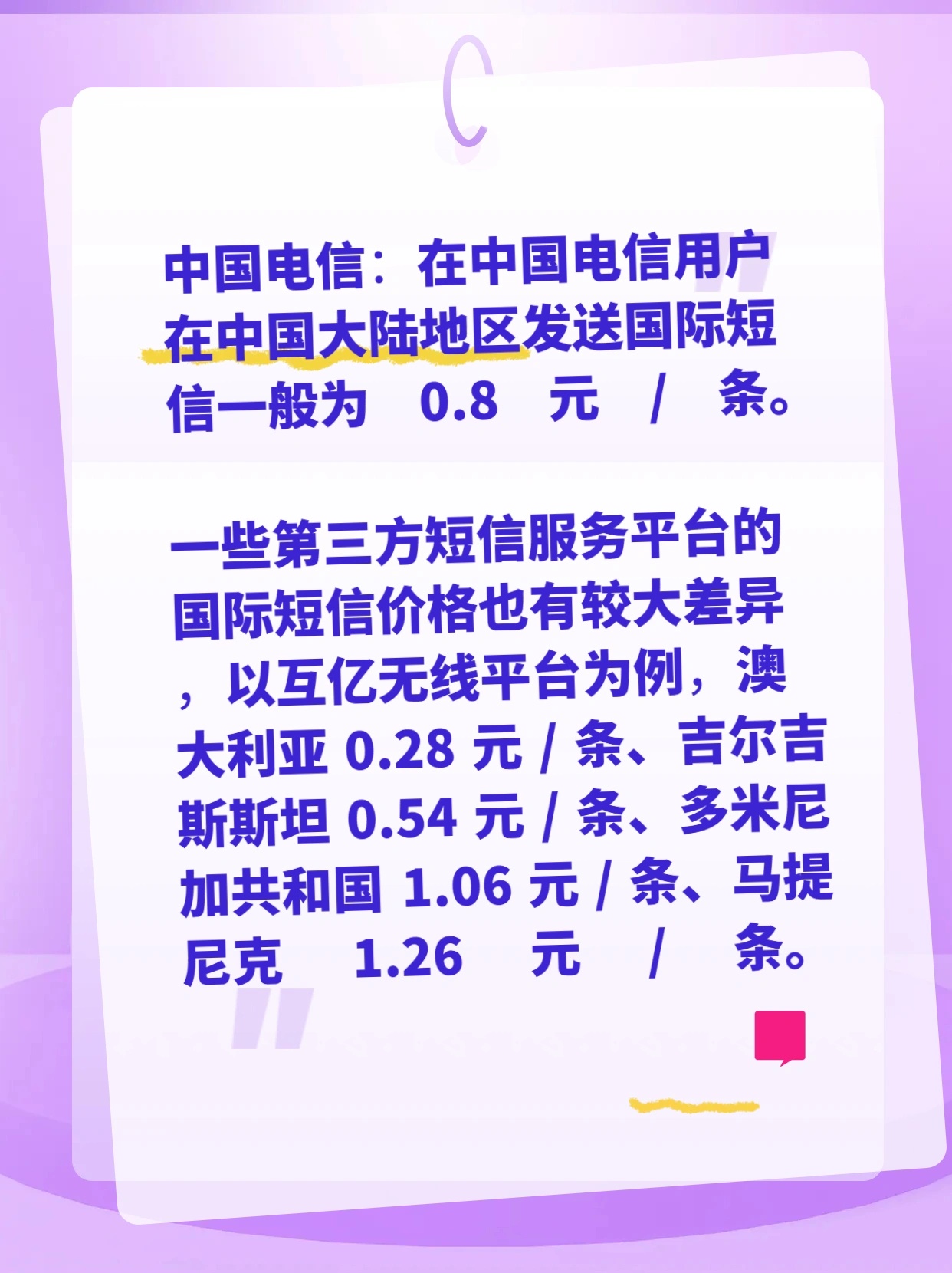 短信发国外价格因运营商和目的地不同而异,频繁发送或涉及敏感内容可能被封号。建议遵守当地及国际短信发送规定,通过正规渠道发送,以避免不必要的费用及风险。具体价格及封号标准需咨询运营商。...